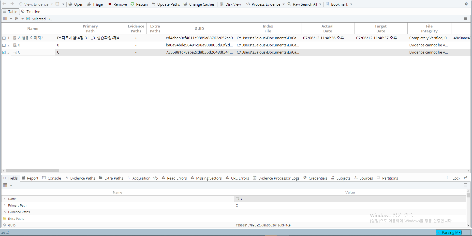 ๋ฐ์ ์๋ Add Evidence File์ ์ฆ๊ฑฐํ์ผ์ ์ถ๊ฐํ ์ ์์ผ๋ฉฐ, Raw Image๋ ๋ง๊ทธ๋๋ก Raw Image๋ฅผ ๋ฃ๋ ๊ฒ์ด๋ค.