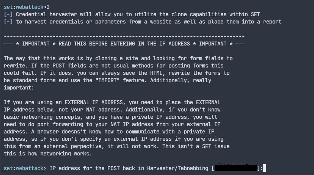 ์ฐ๋ฆฌ๋ 2๋ฒ์ ์๋ Website Attack Vectors๋ฅผ ์ฌ์ฉํ ๊ฒ์ด๊ธฐ ๋๋ฌธ์ 2๋ฅผ ์ ๋ ฅํ๋ค.