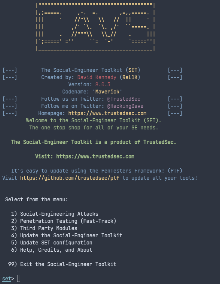 sudo setoolkit