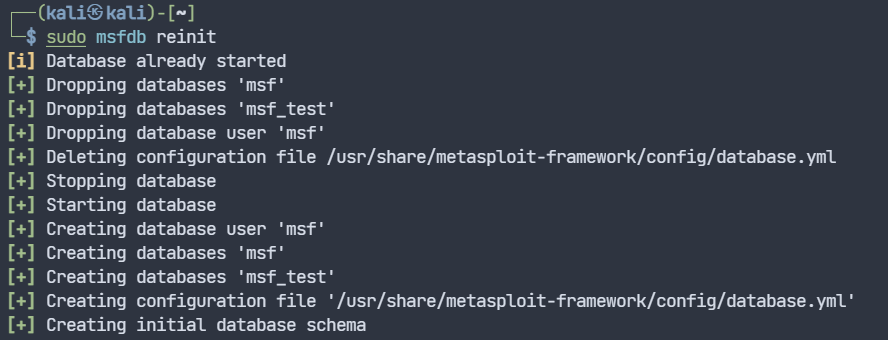 sudo msfdb reinit
